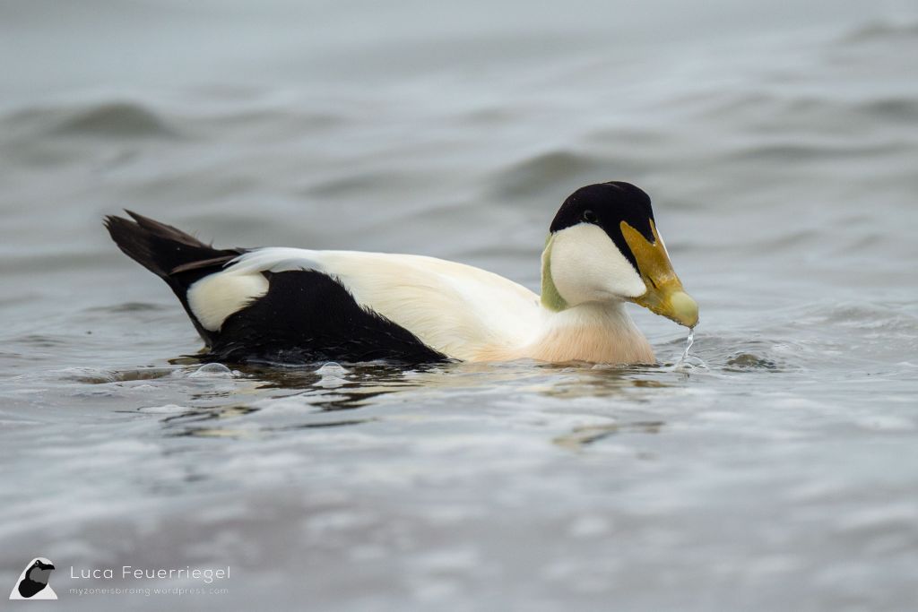 A final visit to the North-Eastern beach produced the usual birds, although we first enjoyed huge numbers of Eurasian Linnets, Meadow Pipits, and a fly-by Great Crested Grebe on the Oberland. The Snow Bunting resting lazily on the North-Eastern pier, with a crowd of photographers nearby, waiting for the ideal photo opportunity and mirroring the activity levels of the bird. This scene was consolidation for leaving the island – the huge numbers of birders and photographeres on Helgoland in October, while surely something that also makes birding there unique, can also get overwhelming as crowds gather for every special or not-so-special sighting. A group of Common Eiders were foraging directly at the water’s edge, the males by now in their stunning breeding plumage. We also saw two Little Buntings, which we later found out had been reported earlier.