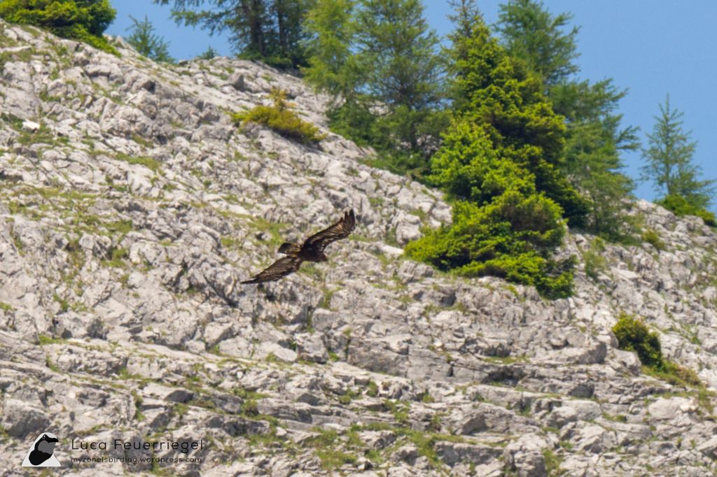 Seeing the vegetation transform on our hike up the Arnspitz was fun, but the trail was steep and narrow. We saw Black Woodpecker in the beech forest at the lower reaches. Getting into an area with smaller trees here, we had Great Spotted Woodpecker, our first Ring Ouzel, and heard a Common Cuckoo. We scanned for Rock Partridge around here but instead got a nice sighting of a Golden Eagle. The last stretch to the Arnspitz hut was extremely tiring and we stopped every few metres. This area around the hut yielded Lesser Redpoll, Lesser Whitethroat, and Water Pipit.