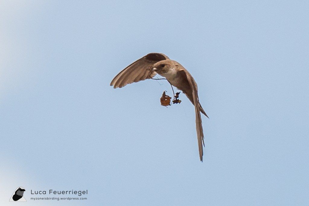 I met Jacob in the train from Munich to Mittenwald, where Fynn joined us. Fynn already did the groceries, which we distributed amongst our backpacks and noticed with dismay that they were significantly heavier than we expected – around 20kg each. This was largely because we definitely prioritised having all available optics over limiting the weight – I had taken my scope and Jacob his tripod (mainly to be able to look for Rock Partridge at the Arnspitz later on the route). However, being excited to see each other again and for the days to come, we set off towards the Mittenwalder hut on the slope of the Karwendel mountains, around 500 meters above the town. Still in Mittenwald, we stopped to watch a pair of Eurasian Crag Martin breeding here, a rare breeding bird in Germany.