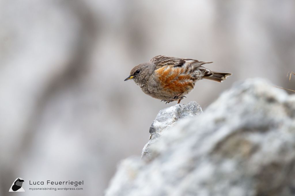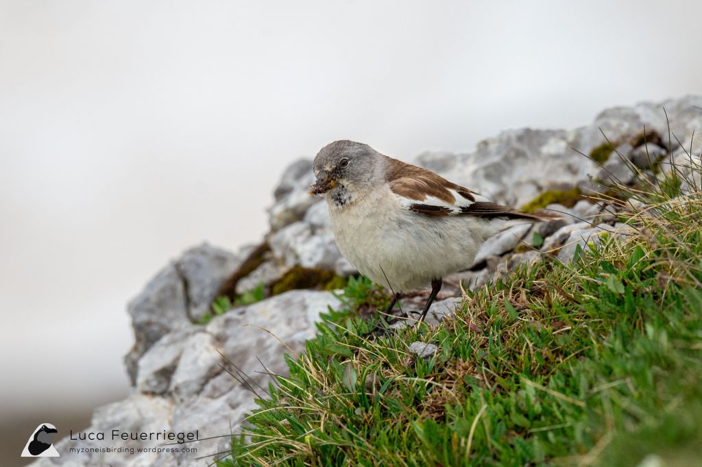 After crossing the uncomfortably cold tunnel, we arrived at the Karwendelgrube still quite early, but unfortunately also covered in fog. We easily had Alpine Accentor, Alpine Chough, Black Redstart, Water Pipit, and White-winged Snowfinch. We began walking the Passamani trail that loops around the Karwendelgrube, scanning intently for Rock Ptarmigan. Across the pit from the restaurant, a croaking sound suddenly exploded out of nowhere and a we had a brief view of a fly-by Rock Ptarmigan, white wings gleaming, before it cleared the ridge and disappeared out of sight. The bird probably flew in and prepared to land in the pit, only seeing us after it flew over the rim of the pit. We hoped for the rest of the morning for a resting bird, but to no avail.