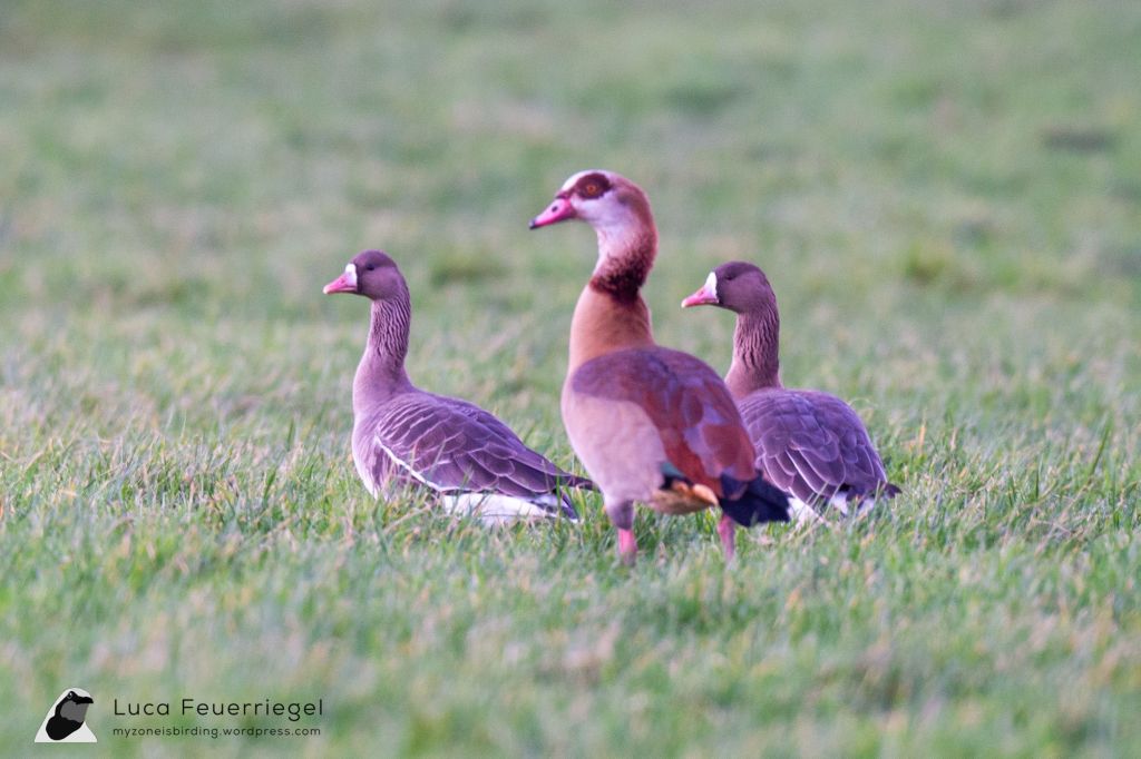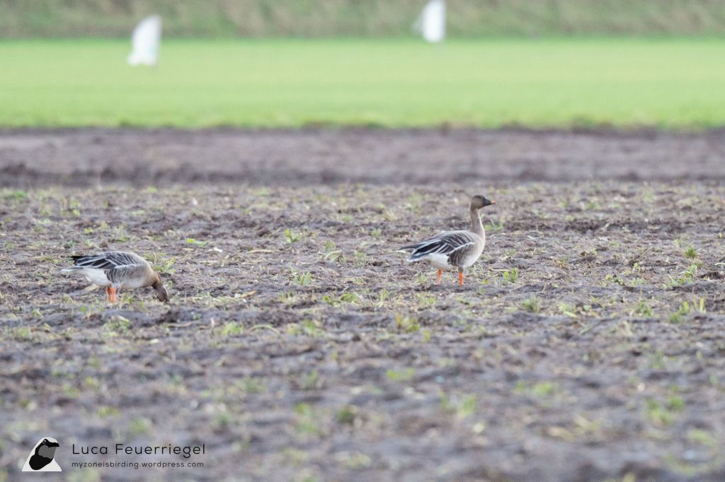 Cycling back to the hostel very satiated by the thought of not having undertaken the long trip from Bonn in vain, I enjoyed watching some common birds. In comparison to the eider everything appeared abundant now, but I gladly realised that observing them is just as engaging. Greylag, Greater White-fronted, Barnacle, Brent, Egyptian, and Tundra Bean Geese were lazing on the tilled fields, while some clumps of trees held Eurasian Collared Dove, Redwing, Fieldfare, and other typical species.