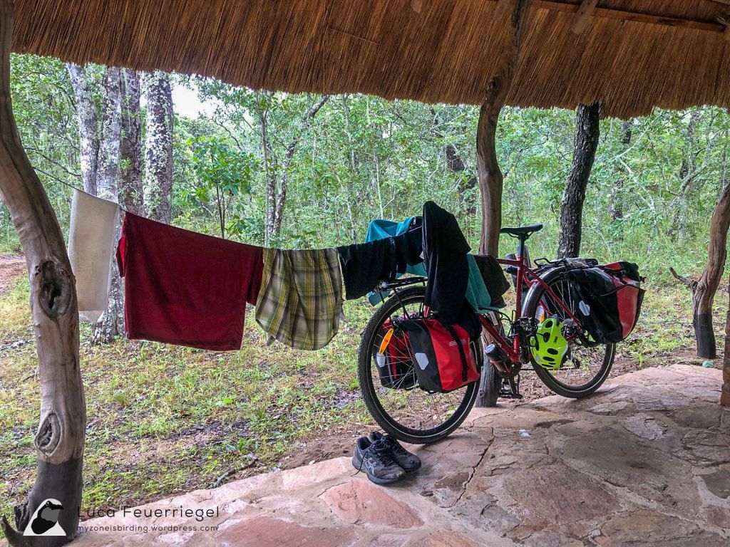 I stayed at the campsite for five nights. The site is very well taken care of, with warm water, long drop toilets with a beautiful view into the woodland, and basins for washing dishes. The water is not officially drinking water but the staff and management drink it. So did I, without any problems. Kyla and David, the couple managing Mutinondo, were extremely welcoming hosts. They made my stay – which would’ve been thoroughly enjoyable simply because of the site’s beautiful scenery and birds – very memorable as we spent some time birding and I really enjoying chatting to them. This also provided a distraction from my knee, which was still limiting my ability to explore.